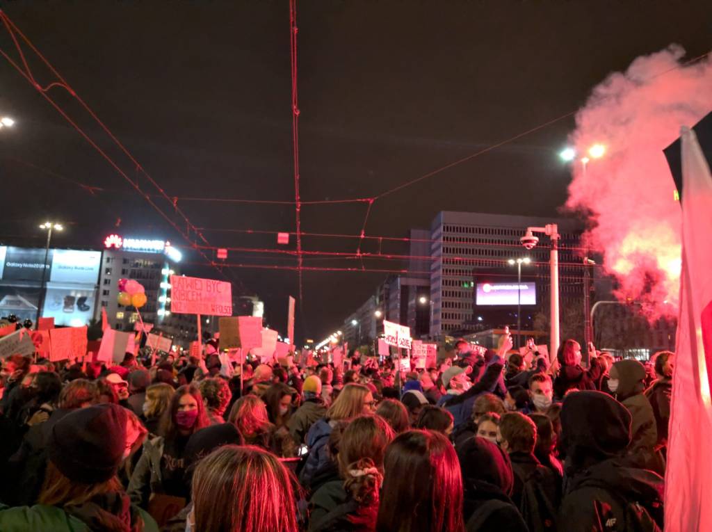 Polish women have been protesting against the verdict of the Constitutional Court on abortion. It took place on the 22nd of October and sought to ban almost all abortions in Poland. So this court (fully politicised and undemocratic) decided that abortions due to incurable foetal defects are not constitutional. We demand the liberalisation of abortion – we want to have the right to decide on our bodies and health. We also need high-quality sex education, easier access to contraceptives, separation of Church and State, and the resignation of this government.